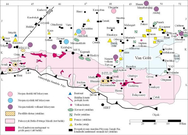 Bitlis-Pötürge Masifinde bulunan %16- 38 Al 2O3 ve %0,2-0,4 (Fe2O3+TiO2) tenörlü ve toplam 20 milyon ton görünür rezervli seramik, refrakter, sır hammaddesi pirofillit yatakları, Bitlis Masifi'nde bulunan %16-38 Al 2O3 ve %0,6- 6 (Fe2O3+TiO2) tenö..